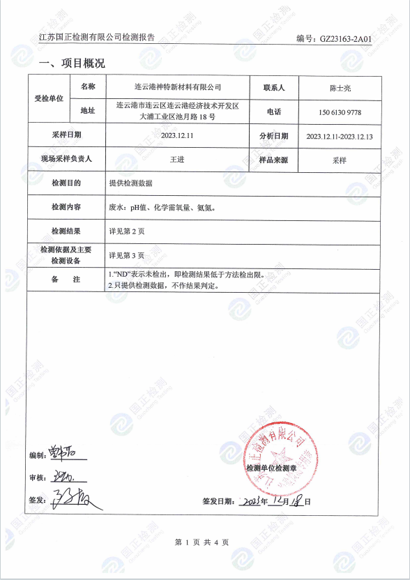 2023年第四季度排污檢測(cè)報(bào)告