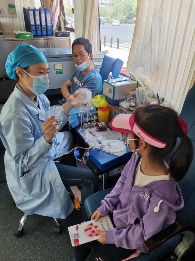 我的女兒很好奇,左瞅瞅右看看,我剛提醒她上面不能亂走,護士卻說,“沒關(guān)系,有什么不懂的可以問我?!薄S谑牵查g打開了她心中的“十萬個為什么”,她一會問問血液為什么是紅色的,一會問問這個設(shè)備是做什么的,后來問道小本子上那些字母干什么,為什么有的要畫一下?我們都給問蒙了,后來才想到她看過我十年前的獻血本,上面有血型勾選的;護士可能也是工作幾年的,不好意思的說,“我沒見過那樣的”。十幾分鐘的獻血很快就結(jié)束了,但是她們的對話仍在持續(xù),直到又有人上來了,才依依不舍的和護士姐姐再見,跟著我們一起離開。