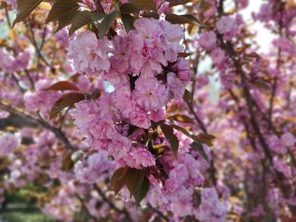 隨著梅花、迎春花、玉蘭花、杏花桃花的陸續(xù)謝幕,海棠花們開始華麗登場。有著藍(lán)天白云的映襯,明媚陽光照耀下的海棠花千嬌百媚,一團團,一簇簇,你挨著我,我擁著你,粉粉嫩嫩,不正像走出病毒霧霾,露出久違笑容的人們的笑臉嗎?