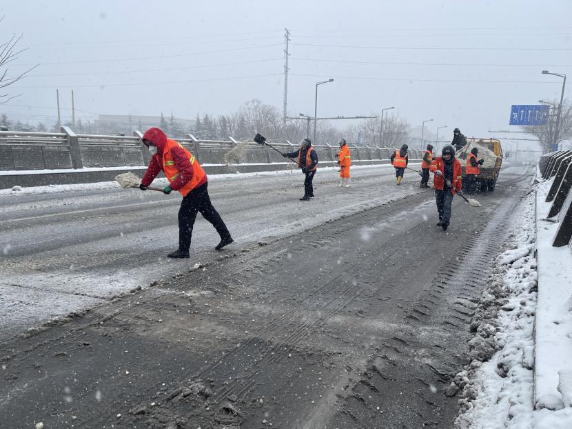 自2月2日以來(lái),裕升養(yǎng)護(hù)分公司接到掃雪除冰緊急通知后積極響應(yīng),迅速調(diào)配人員和物資,等待暴雪降臨。在負(fù)責(zé)人霍正鋼的帶領(lǐng)下,公司第一時(shí)間成立應(yīng)急搶險(xiǎn)隊(duì),這是一支由12名隊(duì)員,平均年齡在57歲所組成的隊(duì)伍,更是一支“特別能吃苦、特別能奉獻(xiàn)、特別能擔(dān)當(dāng)”的隊(duì)伍。雪花于晚次日11點(diǎn)飄然而至,霍正鋼密切關(guān)注雪量以及積雪狀況,并做好指揮部署,同時(shí)通知各隊(duì)員立即開展道路掃雪除冰工作。