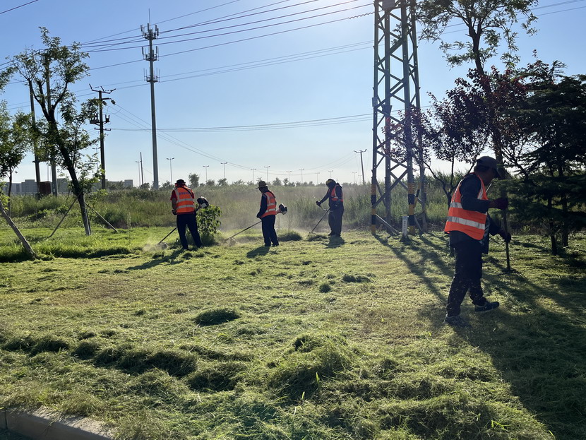 斗酷暑 陽光很烈,他們很美。滾滾熱浪,高溫“烤”驗(yàn)。“炎”值爆表,室外溫度38℃,地表溫度飆升到50℃,城市像一個(gè)巨大的“蒸籠”,空調(diào)房里的人們望門止步。但是,有一群與太陽肩并肩不服“暑”的鐵“汗”子,他們用黝黑皮膚擦亮奮斗的底色。你可以在小區(qū)里看到他們頭頂驕陽找路徑、穿網(wǎng)線、做網(wǎng)絡(luò);可以在東方大道上看到他們冒著紫外線的灼烤,忙著栽種草苗、除草澆水;可以在大浦路上看到他們腳踩滾燙瀝青,忙著轉(zhuǎn)移交通桿;可以在花果山大道上看到他們汗流浹背,背著割灌機(jī)忙著打草。一件件浸透汗?jié)n的工裝,一句句樸實(shí)無華的話語,一份份汗水淋漓的擔(dān)當(dāng)……翔立每位員工都在發(fā)揚(yáng)“特別能吃苦、特別能戰(zhàn)斗、特別能奉獻(xiàn)”的鐵軍精神,攥緊拳頭,埋頭苦干。
