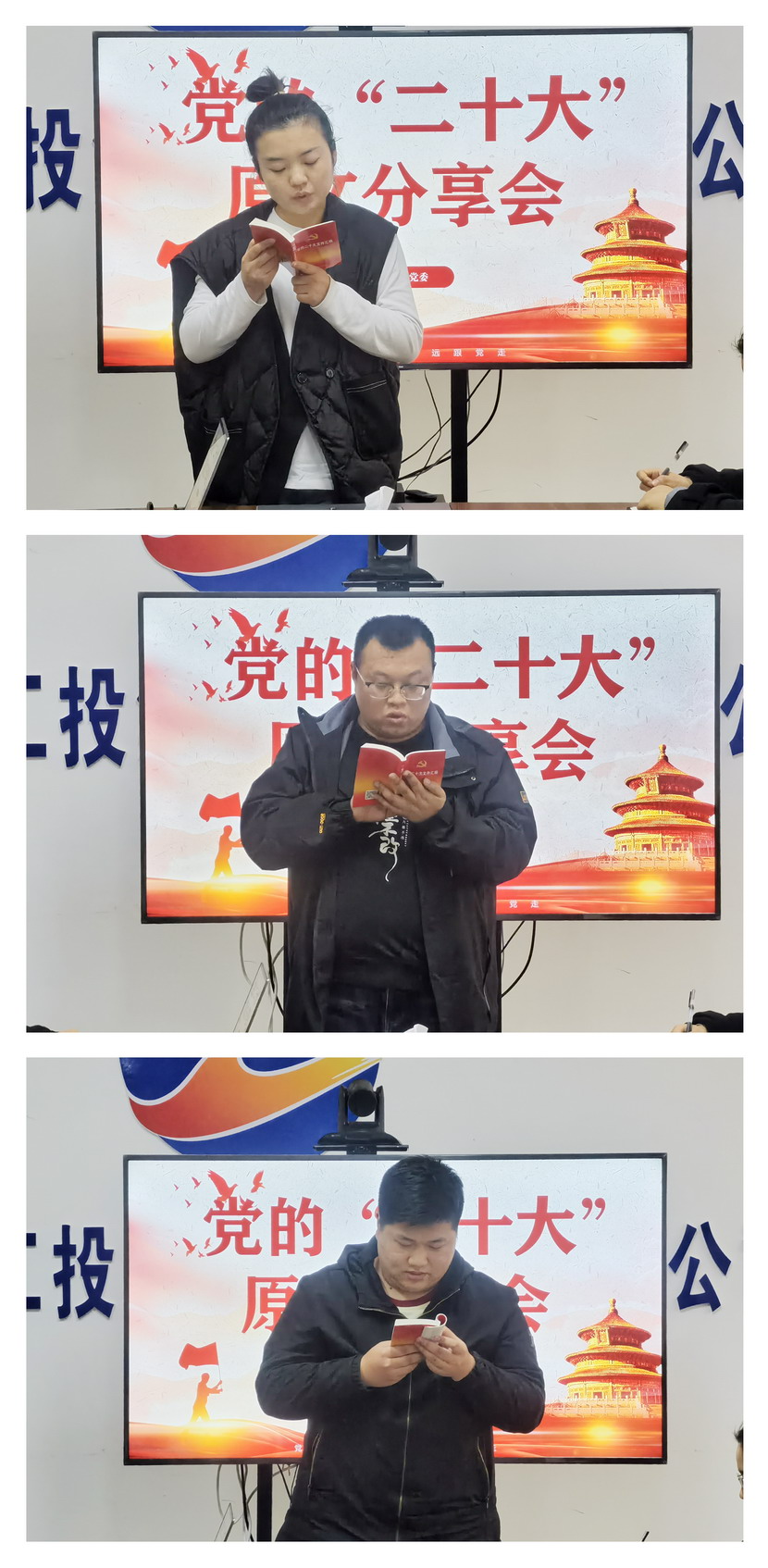 ? ? 11月9日下午,臺北投資公司黨委開展“固定學(xué)習(xí)日”活動,專題學(xué)習(xí)黨的“二十大”精神,分享交流學(xué)習(xí)感悟。