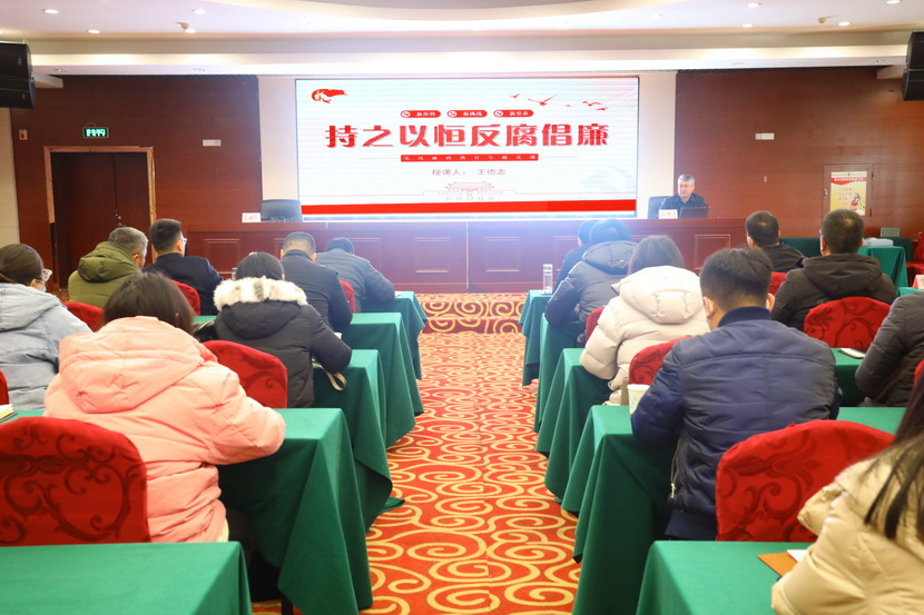 隨后,公司黨委書記、董事長、總經(jīng)理王德志給大家作題為“持之以恒反腐倡廉”的廉政黨課,從當前階段反腐倡廉新形勢、經(jīng)濟發(fā)展與廉政建設(shè)關(guān)系、企業(yè)反腐工作面臨新挑戰(zhàn)、全面落實從嚴治黨總要求四個方面闡述要加強反腐倡廉工作,促進黨風廉政建設(shè)。