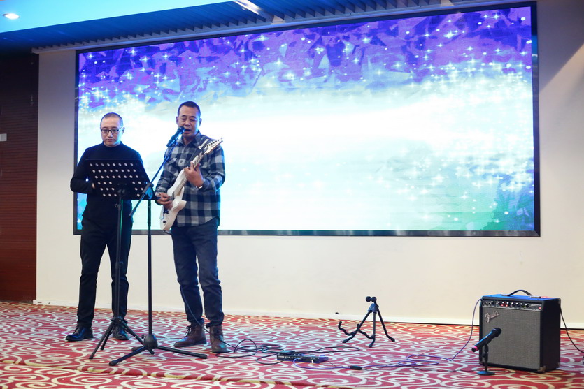 聯(lián)歡會(huì)節(jié)目豐富多彩,有獨(dú)唱、小合唱、魔術(shù)、游戲等。精彩的表演贏得了全場陣陣歡聲笑語,雖然表演很業(yè)余,但大家各個(gè)精神抖擻,充分展示了公司員工的蓬勃朝氣和奮發(fā)進(jìn)取的精神。在熱烈氛圍的感染下,公司領(lǐng)導(dǎo)也紛紛上臺(tái)表演節(jié)目為晚會(huì)助興,楊善革《我愛你塞北的雪》對(duì)新年的祝福和期盼,表達(dá)了迎新年的喜悅心情。公司黨委書記、董事長、總經(jīng)理王德志一曲《南泥灣》更是唱出了公司全體員工熱愛祖國,熱愛企業(yè),立志艱苦奮斗、自力更生,決戰(zhàn)2022,打贏臺(tái)北保衛(wèi)戰(zhàn),再創(chuàng)臺(tái)北新輝煌的決心。