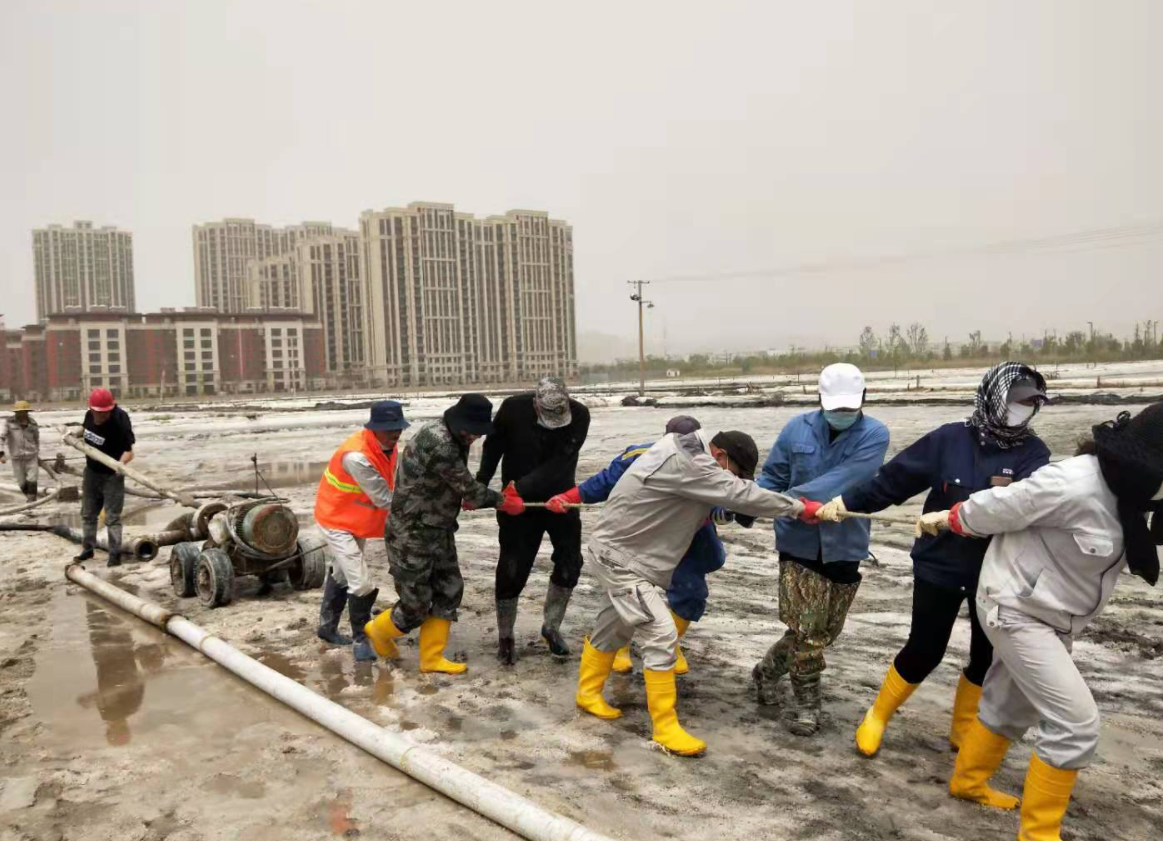 “百日會(huì)戰(zhàn)”完美收官,大家以黨史學(xué)習(xí)教育為精神動(dòng)力,弘揚(yáng)“四再”創(chuàng)業(yè)精神,淬煉“四拼”工作作風(fēng),展現(xiàn)出強(qiáng)有力的政治責(zé)任感和歷史使命感,在廣袤的鹽田上,用勤勞的汗水譜寫“四個(gè)最”的美麗華章。開局最早,搶抓春景好時(shí)光,開創(chuàng)歷史最早記錄,“破天荒”地從大年初十開啟扒鹽。戰(zhàn)線最長,以西灘機(jī)械扒鹽為起點(diǎn),歷經(jīng)東灘、大八組、海濱人工扒鹽,二組、西灘雙線齊上、火力全開,至東灘機(jī)械扒鹽落下帷幕,實(shí)現(xiàn)了“漫漫長征路”的圓滿勝利。歷時(shí)最久,整整百日一舉打破扒鹽歷時(shí)最久記錄,從冷冽刺骨的寒風(fēng),到烈日當(dāng)空的火熱,從臃腫的棉襖,到清涼的短袖。困難最多,面對(duì)天時(shí)不利的氣象條件,面對(duì)著堿廠關(guān)停的嚴(yán)峻局勢(shì),面對(duì)著環(huán)保安全的巨大壓力,面對(duì)著人手不足的現(xiàn)實(shí)問題,團(tuán)結(jié)一心,攻堅(jiān)克難,迎接挑戰(zhàn),眾志成城筑鹽山,“暑霜春雪”顆粒盡歸倉。
