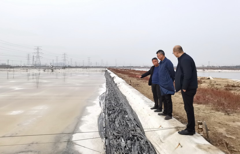17日上午,公司領(lǐng)導(dǎo)王德志、卞霄帶領(lǐng)礦鹵制鹽升級工程指揮部一行調(diào)研灘地改造項目。
