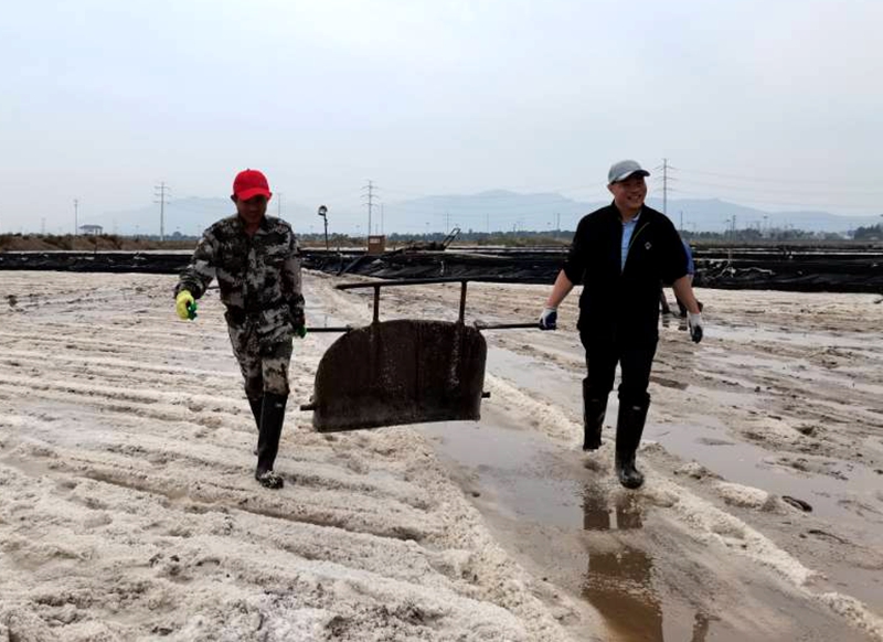 厲兵秣馬,鏖戰(zhàn)秋扒鹽。“同志們,這將是我們臺(tái)北地區(qū)1300年鹽業(yè)史上最后,也是時(shí)間最緊急、任務(wù)最繁重的一次秋扒鹽了”正是因?yàn)槭姑诩纾覀兏峦鼻?。公司全體黨員干部爭(zhēng)分奪秒扒鹽、竭盡全力制鹵,奮戰(zhàn)100天,全力沖刺“開(kāi)新局、奪首勝”目標(biāo)任務(wù)。連云港堿廠關(guān)停在即,鹽鈣聯(lián)產(chǎn)項(xiàng)目終結(jié),原鹽搶收進(jìn)入到了大決戰(zhàn)時(shí)刻。為此,公司上下,從黨委班子到普通辦事員,從直屬單位到公司機(jī)關(guān),全部動(dòng)員起來(lái),9月28日召開(kāi)了戰(zhàn)前動(dòng)員大會(huì)并進(jìn)行秋扒崗前培訓(xùn)。10月2日,天時(shí)地利人和,夜里9時(shí)10分,隨著機(jī)器一聲轟鳴,扒鹽機(jī)組輸鹽大架銀瀑飛濺,大八組、西灘雙向聯(lián)動(dòng),人工扒鹽、機(jī)械扒鹽齊頭并進(jìn)。公司領(lǐng)導(dǎo)與廣大職工想在一起、干在一起,上下齊心、爭(zhēng)分奪秒,擼起袖子、甩開(kāi)膀子,在鹽池間盡情地?fù)]灑著汗水,確保勞動(dòng)成果顆粒歸倉(cāng),誓奪原鹽收官戰(zhàn)全勝。截止6日晚,公司 排放鈣液6000方,扒鹽3000余噸。