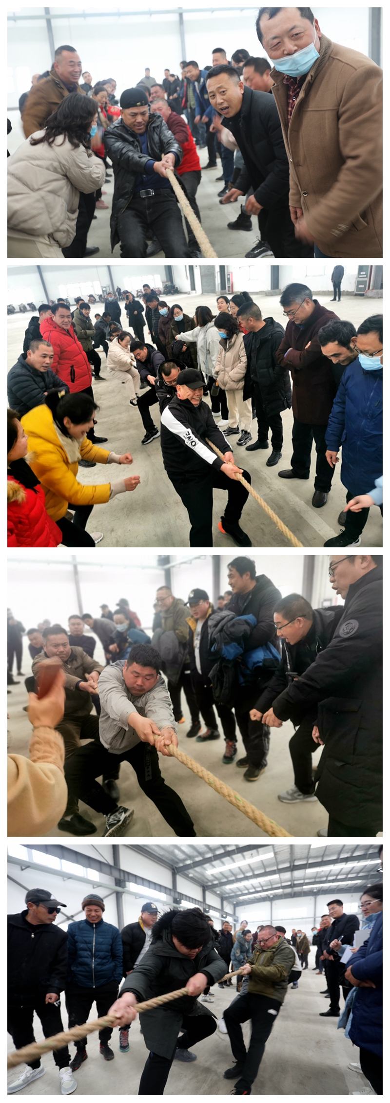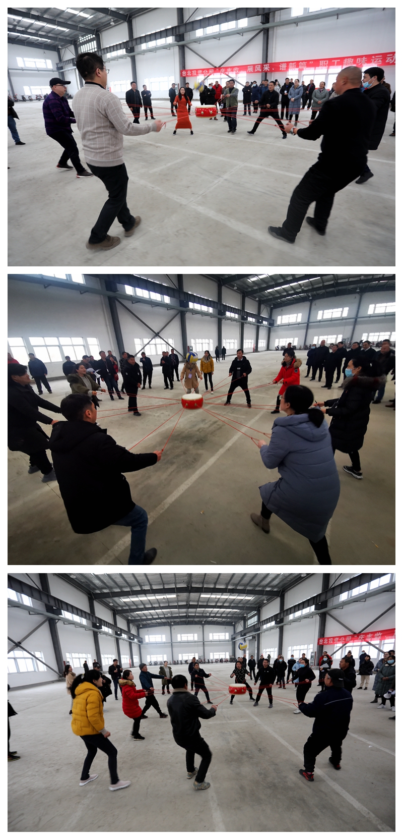 陽光熹微,冬日似金。為喜迎2021年新年的到來,大力弘揚(yáng)團(tuán)結(jié)拼搏,昂揚(yáng)向上、奮發(fā)有為的精神風(fēng)貌,營造生動(dòng)活潑、寬松和諧、積極健康的良好氛圍,12月28日下午,投資公司在海州灣公司9號廠房舉辦“慶豐收、展風(fēng)采、譜新篇”迎元旦職工趣味運(yùn)動(dòng)會(huì)。本次趣味運(yùn)動(dòng)會(huì)分為拔河、同心擊鼓、企鵝漫步、快樂點(diǎn)球等四個(gè)項(xiàng)目,分為兩天舉行,本日舉行拔河、同心擊鼓兩項(xiàng)比賽。