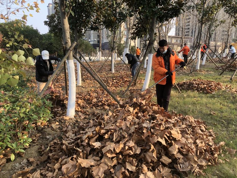 活動(dòng)現(xiàn)場(chǎng),黨員同志、積極分子分為兩撥,分別從創(chuàng)智綠園北門(mén)和東門(mén)對(duì)園內(nèi)雜草落葉進(jìn)行清除。在戴好手套,做好防護(hù)、防凍措施的同時(shí),紛紛拿著掃帚、耙子等工具,統(tǒng)籌安排、分工勞作,齊心協(xié)力,有的用掃帚掃落葉、有的用袋子裝落葉、有的用耙子摟落葉……大家忙得熱火朝天,充分發(fā)揚(yáng)不怕臟、不怕苦、不怕累的黨員先鋒本色,創(chuàng)智綠園內(nèi)處處是同志們清理雜草落葉的身影,構(gòu)成了一道亮麗的風(fēng)景線(xiàn),經(jīng)過(guò)一個(gè)多小時(shí)的辛勤勞動(dòng),兩撥隊(duì)伍順利“會(huì)師”,沿途雜草落葉被清理得干干凈凈,公園環(huán)境也得到明顯改善。