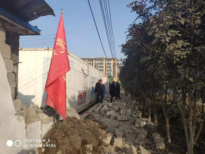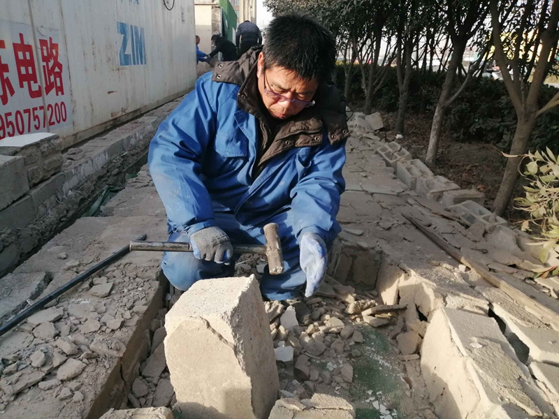據(jù)悉,該處墻頭整體倒塌,大多數(shù)磚塊沒有受到損壞。志愿者們一塊一塊的挑選、清理、搬運(yùn),將可以回收利用的磚塊整理好,用于墻頭的修葺。水泥、沙的配比不太熟悉,天氣寒冷如何做好防凍,怎么辦?臨達(dá)公司的退休老黨員主動(dòng)站了出來,為圍墻修葺工作做指導(dǎo),提供幫助。經(jīng)過兩天的奮戰(zhàn),將倒塌的墻頭修葺好,并拉好了美化綠布。