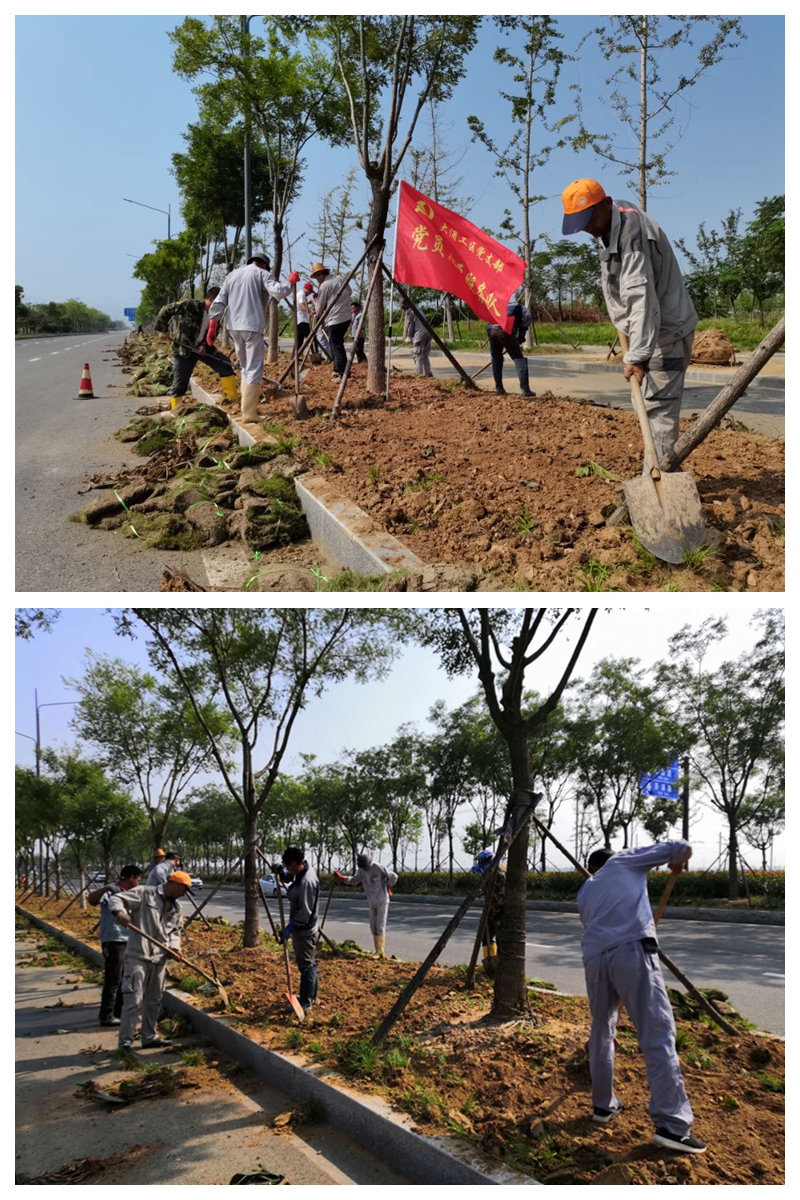 末伏天,熱浪席卷全身,太陽(yáng)瘋了似的肆虐著萬(wàn)物,即使是狂風(fēng)暴雨的降臨也只能緩解一時(shí)的沉悶。8月18日上午,大浦支部黨員突擊隊(duì)臨危受命,奔赴匯晶北路綠化帶助力翔立分公司突擊鋪設(shè)草皮工程任務(wù),攜手共建美麗連云港。