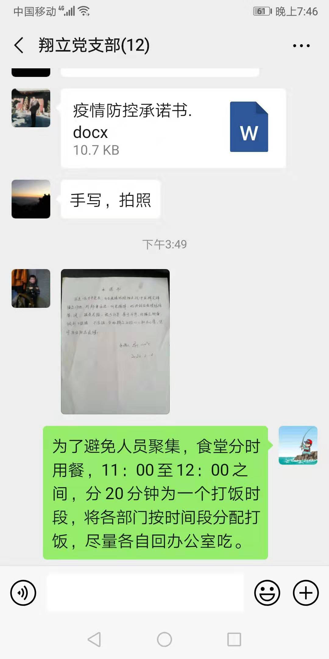 開展疫情防控建言獻(xiàn)策活動。根據(jù)公司要求,翔立支部利用支部微信群,QQ辦公群等媒體工具,組織開展了“疫情防控我承諾”,根據(jù)疫情防控要求全體管理人員和黨員同志們簽下承諾書。根據(jù)各崗位特點全員開展“我為疫情防控出份力”活動,號召大家出謀劃策,暢所欲言將好的做法,合理的建議等進(jìn)行討論,使大家積極參與到“我為疫情防控獻(xiàn)一策”等活動中。