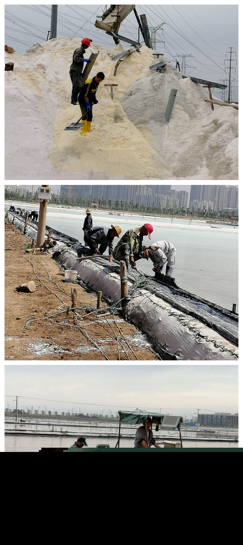 沒有參加扒鹽的人員也沒閑著,他們將工作重心轉(zhuǎn)移到苫布保鹽工作中來,苫鹽廩布、整理樁繩、修補、拉放塑布,對存鹽廩基等區(qū)域進行疏通加固,以及扒鹽后有序推進灘場文明等等。特別是東灘,為了盡早完成1680公畝的灌池任務(wù),至三月初以來,工人們起早貪黑、放棄節(jié)假日克服一切困難,經(jīng)過多方共同努力現(xiàn)已灌池1200多公畝,預(yù)估池內(nèi)長鹽已達8000多噸。面對雨季即將到來之際,各單元在保證鹽色、鹽質(zhì)做好安全扒鹽的同時,抓住晴好天氣強化大面積制鹵,加大走水深度和節(jié)制,充分利用蒸發(fā)量多制鹵、制好鹵為順利度過汛期做好一切準備。