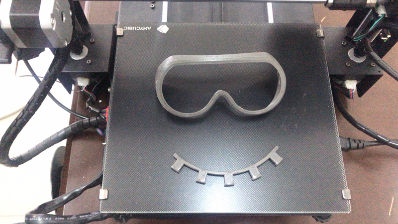 2月17日晚7時,第一件3D打印護目鏡樣品制作完成。經(jīng)過調(diào)整鏡架大小、安裝高度、松緊帶彈力、實現(xiàn)護目鏡與口罩的配合等,完成定型設(shè)計,并可根據(jù)使用者面部大小個性化定制。