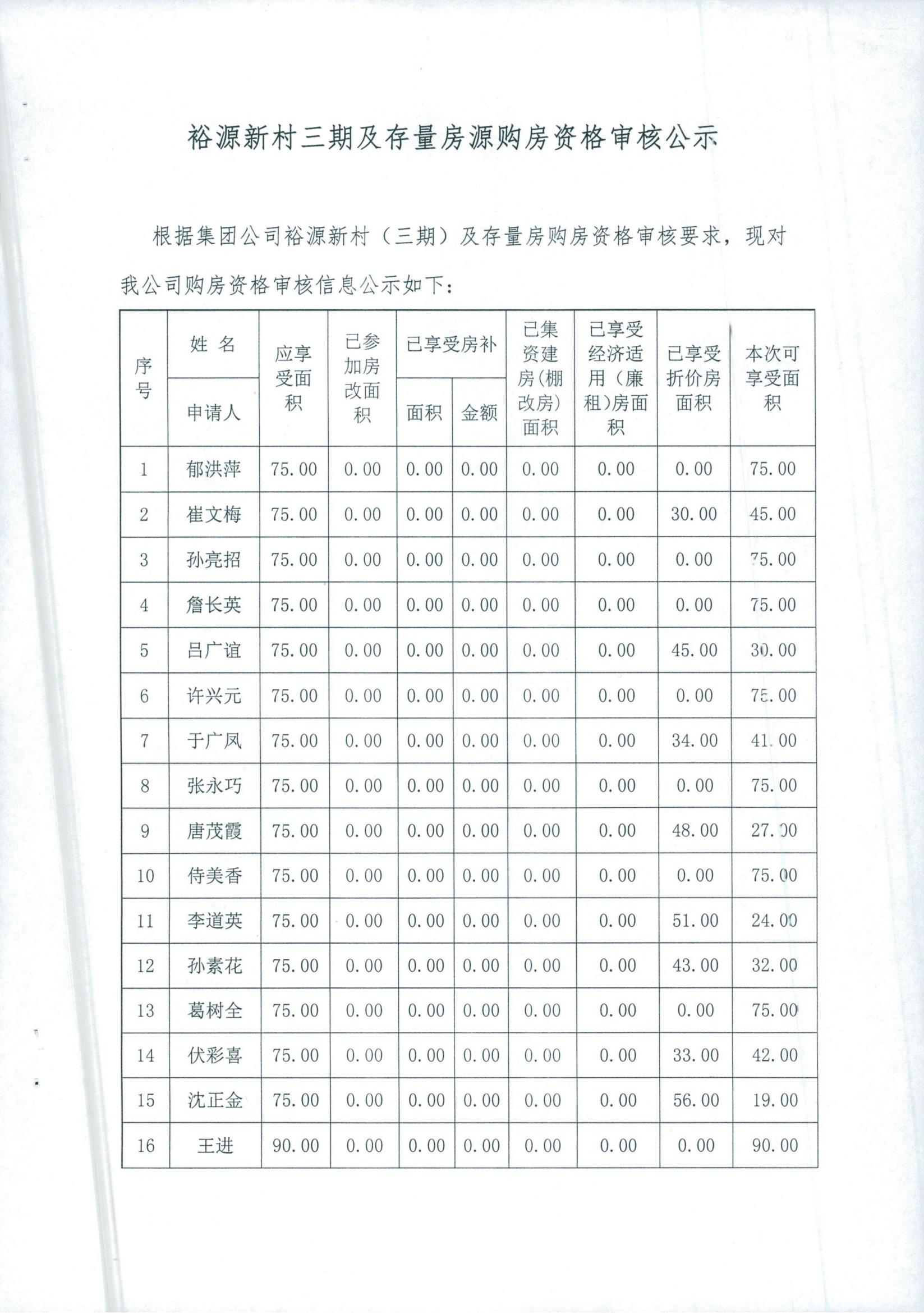 裕源新村三期及存量房源購(gòu)房資格審核公示