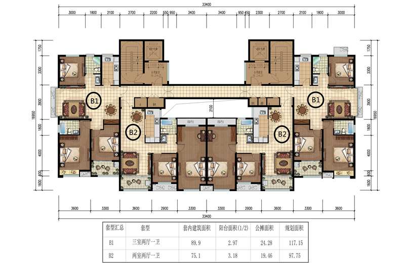 | B2 | 兩室兩廳一衛(wèi) | 97.75 | 154 | A2#、A3#、A4#、A5# |