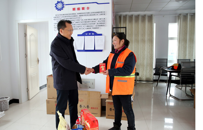 ? ? ? ?春節(jié)前夕,投資公司工會主席劉剛,副總經(jīng)理楊守明、湯占國走訪慰問勞動模范,向他們傳遞組織的關(guān)懷與溫暖,并為他們送去慰問金、慰問品和節(jié)日祝福。