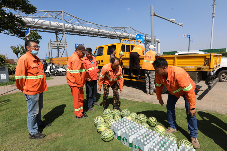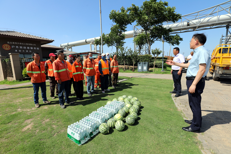 7月5日下午,投資公司黨委副書記、工會主席劉剛深入一線看望慰問高溫作業(yè)職工,為他們送去礦泉水、西瓜等防暑降溫物品,囑咐他們調(diào)節(jié)好高溫作業(yè)時間,用好防暑降溫藥品包,確保高溫作業(yè)安全。
