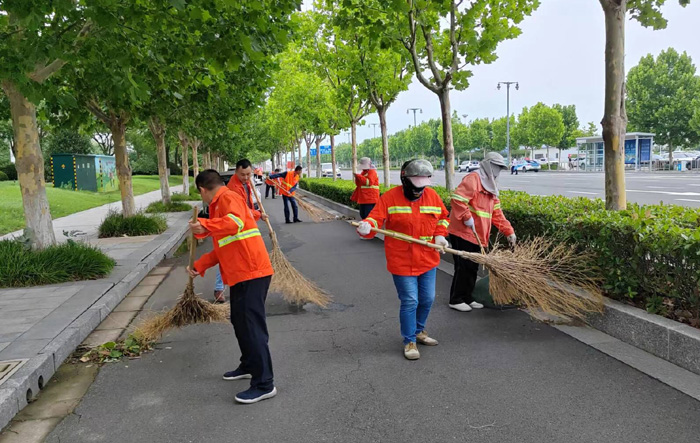 集中奉獻(xiàn)“熱火朝天”。學(xué)習(xí)結(jié)束后,保潔、瑞南支部近20余名黨員,匯集于徐圩新區(qū)核心區(qū)域上海路、南京路輔道現(xiàn)場,開展人工清掃道路積土,樹葉集中奉獻(xiàn)勞動。勞動現(xiàn)場,大家無懼七月高溫炎熱天氣,揮動手中大掃把,迅速清掃落葉,雨水沖涮下來的綠化帶中泥土長達(dá)2000多米長,打包轉(zhuǎn)運各類垃圾30多包,看著整潔黑色路面呈現(xiàn)眼前,隊員們情不自禁露出開心的笑容。(楊波 金知青)