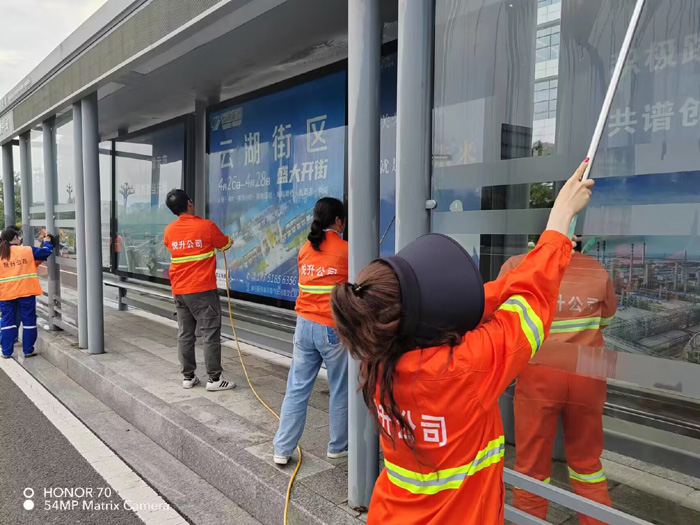 ? ? ? ?集中勞動“有力彰顯”。學習活動結束后,保潔、機關黨支部20多名黨員匯集新區(qū)核心區(qū)域徐圩大道,南京路等路段,開展黨員義務勞動?;顒蝇F(xiàn)場,大家分工明確,相互配合,無懼高溫天氣,上下?lián)]動雙臂,沖洗站臺玻璃和清理廣告標語,經(jīng)過兩個多小時持續(xù)奮戰(zhàn),徒手清洗站臺20多個,座椅40多個。(楊波)