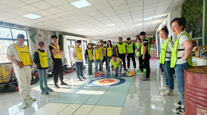 30余名青年骨干依次分成兩隊(duì)進(jìn)行團(tuán)隊(duì)拓展比賽,大家在暖場(chǎng)游戲破冰行動(dòng)中相互熟悉。緊接著大家按照隊(duì)伍分組開展訓(xùn)練游戲,訓(xùn)練中大家集中精力,相互扶持幫助,共同完成對(duì)戰(zhàn)。其中冰壺游戲考驗(yàn)每位青年的耐心和定力,需要瞄準(zhǔn)方向,掌握好力度,共同協(xié)作得出好成績(jī)。多個(gè)極富挑戰(zhàn)性的項(xiàng)目在大家的齊心協(xié)力下順利完成。整場(chǎng)活動(dòng)現(xiàn)場(chǎng)氣氛活躍,盡顯青春活力,比賽的形式也將本次活動(dòng)推向了高潮。
