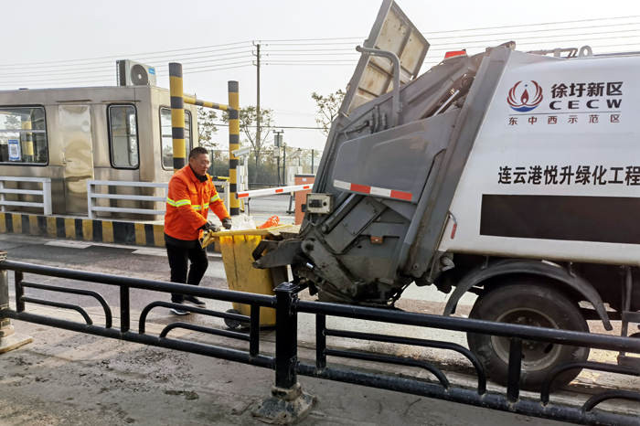 徐圩新區(qū)地域面積較大,廠區(qū)單位分布分散,形成集中清運(yùn)點(diǎn)之間的跨度大、距離遠(yuǎn),從最東端的虹洋港口到最西端242省道邊的人文園,兩點(diǎn)相距就有15公里之多,面廣量大。為及時高效完成垃圾清運(yùn)工作,羅海軍每天凌晨4點(diǎn)他對作業(yè)車輛進(jìn)行仔細(xì)檢查,隨后召開班前會議,他倡議全班工作人員:“吃在車上,干在路上?!睜幏謯Z秒,確保工作完成更到位、更扎實(shí)。