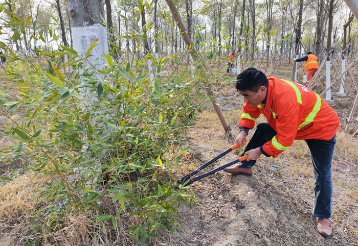 當前,為扎實做好冬季樹木養(yǎng)護工作,提高樹木的過冬、抗病和抗蟲能力,李傳武帶領班組全員開展樹木涂白行動,悉心為樹木披上“防寒衣”。為達到同一標準,他采用“立桿涂白法”,首先安排專人進行劃線,將行道樹涂白高度統(tǒng)一控制在1.2米,使區(qū)域內涂白高度保持一致,確保樹木涂白效果與植物整體美觀,經(jīng)過10天的持續(xù)工作,完成10000余棵行道樹涂白工作(完成工作量約20%)。