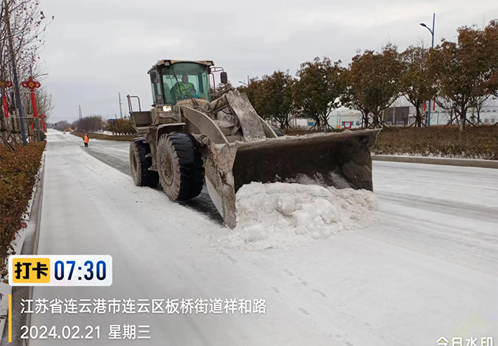 雪花紛飛,寒風(fēng)凜冽,板橋工業(yè)園區(qū)內(nèi),除雪車、雪輥車等機(jī)械設(shè)備齊上陣,采取機(jī)械化與人工除雪相結(jié)合的方式,雪鍬、掃帚齊上陣,大家你鏟我除、干勁十足,以最快的速度清除板橋園區(qū)云港路、祥和路、瑞和路等交叉路口、重要地段冰凍積雪。