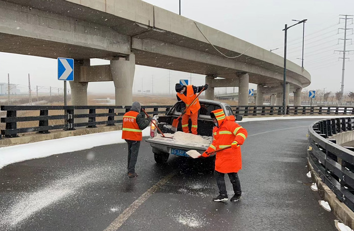 掃雪除冰工作刻不容緩。按照悅升公司掃雪除冰工作任務(wù)分配,環(huán)衛(wèi)分公司負(fù)責(zé)228徐新路到環(huán)保大道路段掃雪除冰任務(wù)。該區(qū)域內(nèi)因含有張圩互通大橋,光橋梁匝道、輔道就有8條,上下路段非常陡滑,給掃雪除冰工作帶來極大挑戰(zhàn)。但該公司人員堅(jiān)決認(rèn)領(lǐng)任務(wù),沒有任何退縮。他們采取車輛緩慢行駛方式,橋梁陡峭路段就使用人工用鐵锨一锨一锨端灑的方式進(jìn)行。雖然寒風(fēng)雪天中,不停的作業(yè)使胳膊潑灑的極其酸累,但大家不辭辛苦,沒有一絲怨言,全體人員全部值守在崗,奮戰(zhàn)在掃雪除兵工作第一線,僅2月4日一天,就潑灑融雪劑7車近30噸,為打贏掃雪除冰功堅(jiān)戰(zhàn)打好堅(jiān)實(shí)基礎(chǔ)。(晁華)