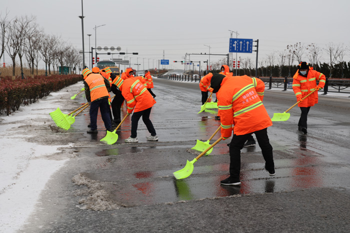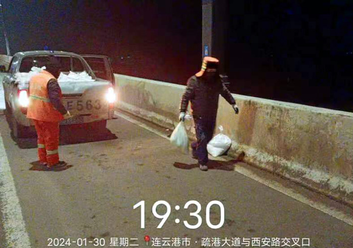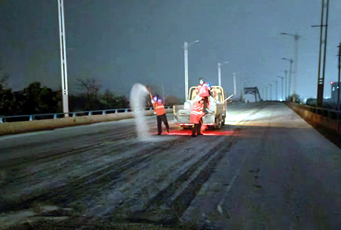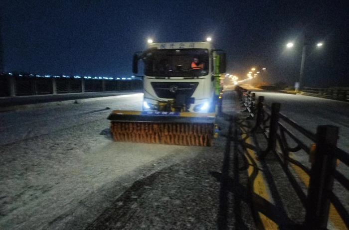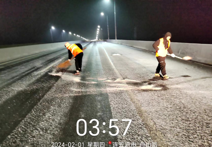 截止早上7點(diǎn),悅升公司共出動機(jī)械設(shè)備10臺、人員260余人,對橋梁和重點(diǎn)結(jié)冰地段使用融雪劑150余噸,及時消除路面冰凍隱患100余處。