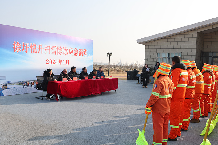 冬季是冰凍、降雪等自然災(zāi)害高發(fā)季節(jié),為切實(shí)做好冰雪災(zāi)害性天氣的應(yīng)對及突擊保障工作,搶險(xiǎn)救災(zāi)減少損失,1月4日下午,悅升公司聯(lián)合徐圩城建公司及社事局、徐圩環(huán)衛(wèi)所在上海路進(jìn)行掃雪除冰應(yīng)急演練。徐圩城建公司副總經(jīng)理肖堅(jiān),徐圩環(huán)衛(wèi)所所長郁紅衛(wèi),徐圩新區(qū)社會事業(yè)局環(huán)衛(wèi)科科長趙國慧、悅升公司董事長馮如師、總經(jīng)理徐習(xí)華及各公司相關(guān)負(fù)責(zé)人參與本次演練。