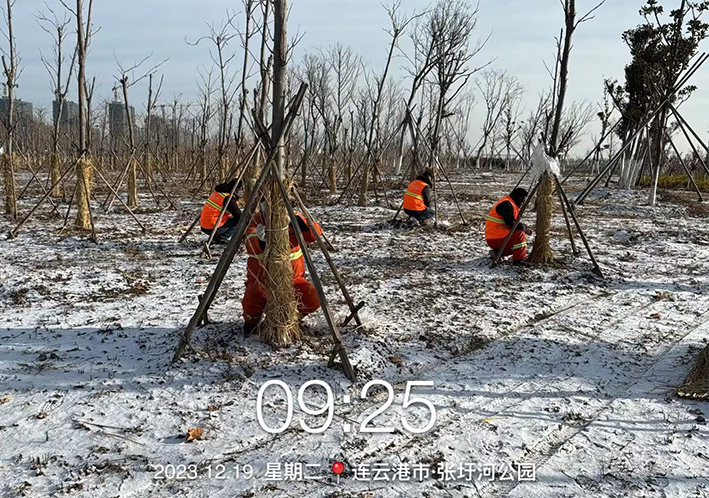 為確保園林樹木安全越冬,有效鞏固園林綠化成果,自11月中旬起,綠化分公司按照“早動(dòng)員、早部署、早實(shí)施”的原則,在管養(yǎng)區(qū)域開展了冬季綠地管護(hù)提質(zhì)專項(xiàng)活動(dòng),通過澆灌凍水、樹木修剪、根頸培土、包裹樹干等多項(xiàng)舉措有力保證了苗木安全過冬。