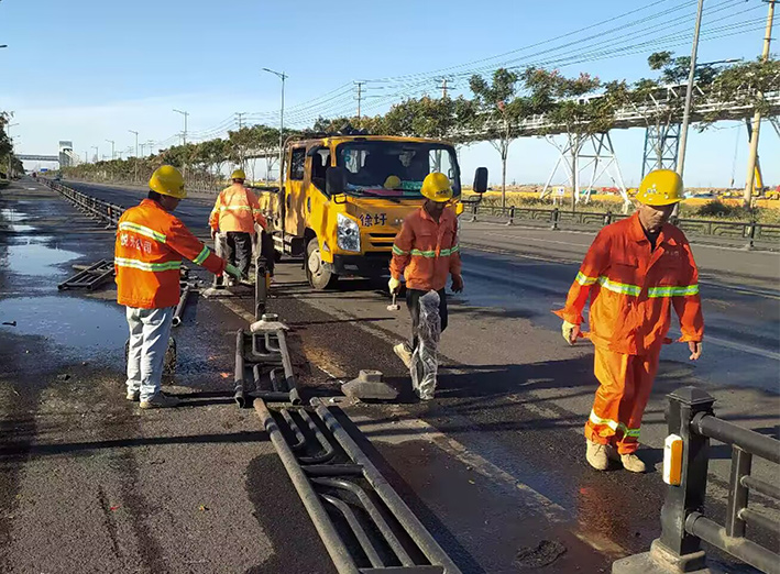 自10月23日以來,道路養(yǎng)護(hù)人員的腳步?jīng)]有停歇,依舊是早出晚歸,默默堅(jiān)守在崗位上。為更快解決道路養(yǎng)護(hù)過程中存在的薄弱環(huán)節(jié),市政分公司把每條道路細(xì)化到具體的責(zé)任組,實(shí)行定人、定路段、定標(biāo)準(zhǔn),全力以赴做好抓差補(bǔ)缺,尤其要做好綠化帶里外旮旯等處窨井巡查與維護(hù)工作,不留死角。截至目前,已完成核心區(qū)、石化區(qū)等路段瀝青路面修補(bǔ)約90平方米,雨水井篦維修更換33套,更換窨井蓋14個(gè)、提升窨井3座,補(bǔ)充隔離欄示廓反光標(biāo)146個(gè),應(yīng)急搶修受損道路隔離護(hù)欄78米、調(diào)整、整平、扶正路牙石約126米。