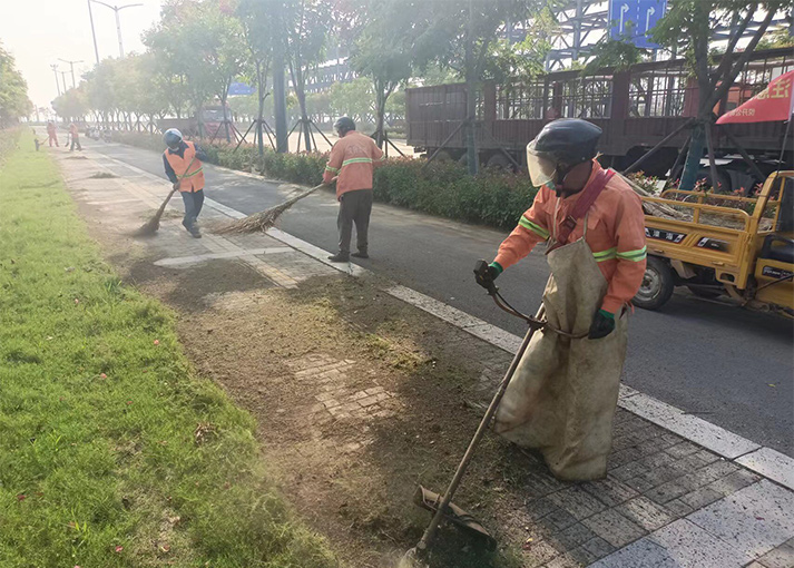 連日來,該分公司園區(qū)兩個(gè)班組在班長帶領(lǐng)下,近30余名突擊隊(duì)員,主動(dòng)參與石化七道輔道雜草環(huán)境大清理戰(zhàn)役中。工作現(xiàn)場,10余名黨員先鋒率先示范,臟活累活爭先恐后。黨員朱海勇、石鋒等同志每天身背幾十斤重的打草機(jī),工作時(shí)長達(dá)5個(gè)多時(shí),盡管塵土飛揚(yáng),仍然堅(jiān)守道路崗位。輔道沿線,突擊隊(duì)員一字排開,舞動(dòng)手中大掃把,快速清掃路面雜草泥土。經(jīng)過兩天努力奮戰(zhàn),人工清理輔道面包磚縫雜草,石子長達(dá)2000多米,撿拾各種隱藏垃圾300余包,轉(zhuǎn)運(yùn)各種垃圾40余車,有力保障馬拉松沿線環(huán)境整潔達(dá)標(biāo)。