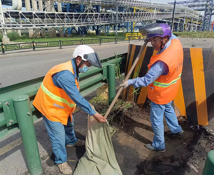 示范引領(lǐng)處處呈現(xiàn)。節(jié)前環(huán)境大治理工作開展以來,全公司下掀起“大干15天、再創(chuàng)新佳績”勞動(dòng)競賽活動(dòng)。道路一線黨員示范作用有力得以彰顯。黨員張學(xué)軍、龔飛、姚功、陳小軍等同志工作中爭先恐后,臟活累活沖鋒在前,呈現(xiàn)出熱火朝天的繁忙工作景象。園區(qū)班組、女子班組突擊清理道路兩邊的雜草、岔路口泥土,大型車輛拋灑石子。清理路面達(dá)3000多米長,清理打包深秋梧桐落葉達(dá)100多袋,確保行車安全與環(huán)境治理同步進(jìn)行。