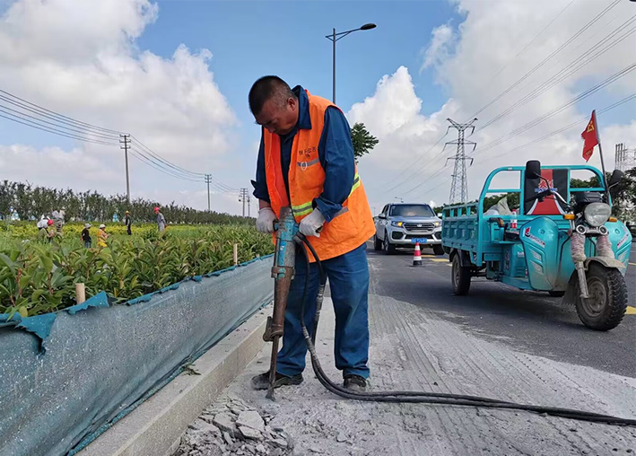 該分公司道路保潔緊扣徐圩城建與悅升公司考核細(xì)則,立足實際制定適合業(yè)務(wù)發(fā)展相關(guān)保潔制度與標(biāo)準(zhǔn),延續(xù)拓展繼徐新路,上海路,南京路、徐圩大道原優(yōu)質(zhì)道路之外的,石化園區(qū)樣板路延伸工程。近一個月以來,園區(qū)兩個班組近35名保潔員工,齊心合力,步調(diào)一致,恪盡堅守道路一線。黨員生產(chǎn)骨干陳小軍、薛明柱、朱海勇等同志示范引領(lǐng)有力得以彰顯,每天加班加點,累了路邊草地上休息,盡管汗水濕透橙色衣衫,仍然忙碌于道路兩側(cè)。全體員工無懼熾熱陽光照曬,清掃人行道上的泥土、樹葉,石子近5000多米長,打包裝運路邊雜物達800多袋,清理雜草50多處。安全序時推進路障大排查。面對路面上凝固的混凝土塊,大家舉起鐵錘不斷振動敲打,150米長的柏油路面恢復(fù)往日的干凈、整潔。在他們的共同努力下,園區(qū)的樣板路創(chuàng)建已形成規(guī)模。下一步,保潔分公司將定期將加大巡查與考核力度,發(fā)現(xiàn)問題立即整改,為成功完成園區(qū)各類重大活動保障工作打下堅實品質(zhì)根基。(楊波)