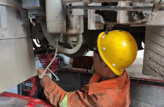 ? ? ? ?入夏以來,保養(yǎng)和維修的環(huán)衛(wèi)車輛較平時(shí)都有所增加,給維修班組增加了不小的壓力,大家整天都處于“戰(zhàn)斗”狀態(tài)。高峰時(shí)期,一天進(jìn)車間維修保養(yǎng)的大、小車輛達(dá)8臺。在一處維修現(xiàn)場,班長丁寶清與維修工陳寬軍正在貓著腰,歪著頭,對清掃車油濾部件進(jìn)行檢修、更換,高溫天氣,維修車輛對工人身體素質(zhì)確實(shí)是一種嚴(yán)峻的考驗(yàn),不一會兒,丁寶清額頭上冒出的汗珠沿著臉頰、下巴往下滴,他抹了抹,手上油漬和污垢在臉上留下了一道道黑痕,他們用實(shí)際行動詮釋著愛崗敬業(yè)的真諦。經(jīng)過1個(gè)多小時(shí)的兩人默契配合,順利完成此次保養(yǎng)任務(wù)。休息片刻,又投入到新一輪的車輛檢修中 。