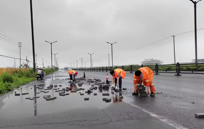 中午12時(shí),保潔分公司接到徐圩城建應(yīng)急處理電話,港前大道向南處近2000多米長路面存在大量拋灑磚塊,對(duì)過往車輛造成極大安全隱患,極易引發(fā)安全事故,嚴(yán)重影響行車安全。該分公司了解情況后,立即組織安排突擊隊(duì)員進(jìn)行及時(shí)清理?,F(xiàn)場(chǎng),3名身著橘紅工作服的養(yǎng)護(hù)人員首先擺放了安全警示錐,隨后徒手進(jìn)行拋灑物的撿拾工作。經(jīng)過3個(gè)多小時(shí)的努力,累計(jì)搬運(yùn)磚塊近800多塊,及時(shí)消除了安全隱患。該路段又恢復(fù)了往日的干凈整潔,車輛通行安全暢通。(楊波)