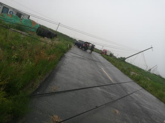 8月12日,連云港普降大到暴雨,徐圩新區(qū)徐新公路附近出現(xiàn)了龍卷風等突發(fā)強對流天氣,導致供電局18根電線桿斷桿,2臺開關遭雷電擊穿,35KV線路停電。臺南供電所轄區(qū)張圩小區(qū)、幸福家園道路沿線也遭受到不同程度的破壞,現(xiàn)場2根電線桿斷裂、多根電桿傾斜、架空導線掉落地上,道路交通一度癱瘓。